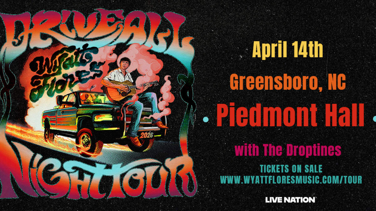 Wyatt Flores is bringing his Drive All Night Tour to Piedmont Hall April 14, 2026! Pull those cowboy boots out because we'll be singing and boot scootin' all night. Don’t miss your chance to see one of country’s rising stars live in Greensboro!